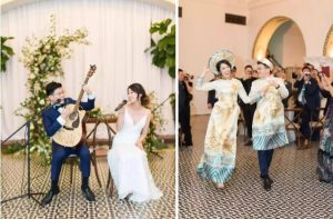 Sau buổi lễ, cặp đôi không quên thay trang phục cưới truyền thống của Việt