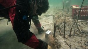 Giữa một hồ nước lâu đời thuộc bán đảo Balkan, ngôi làng cổ lộ diện